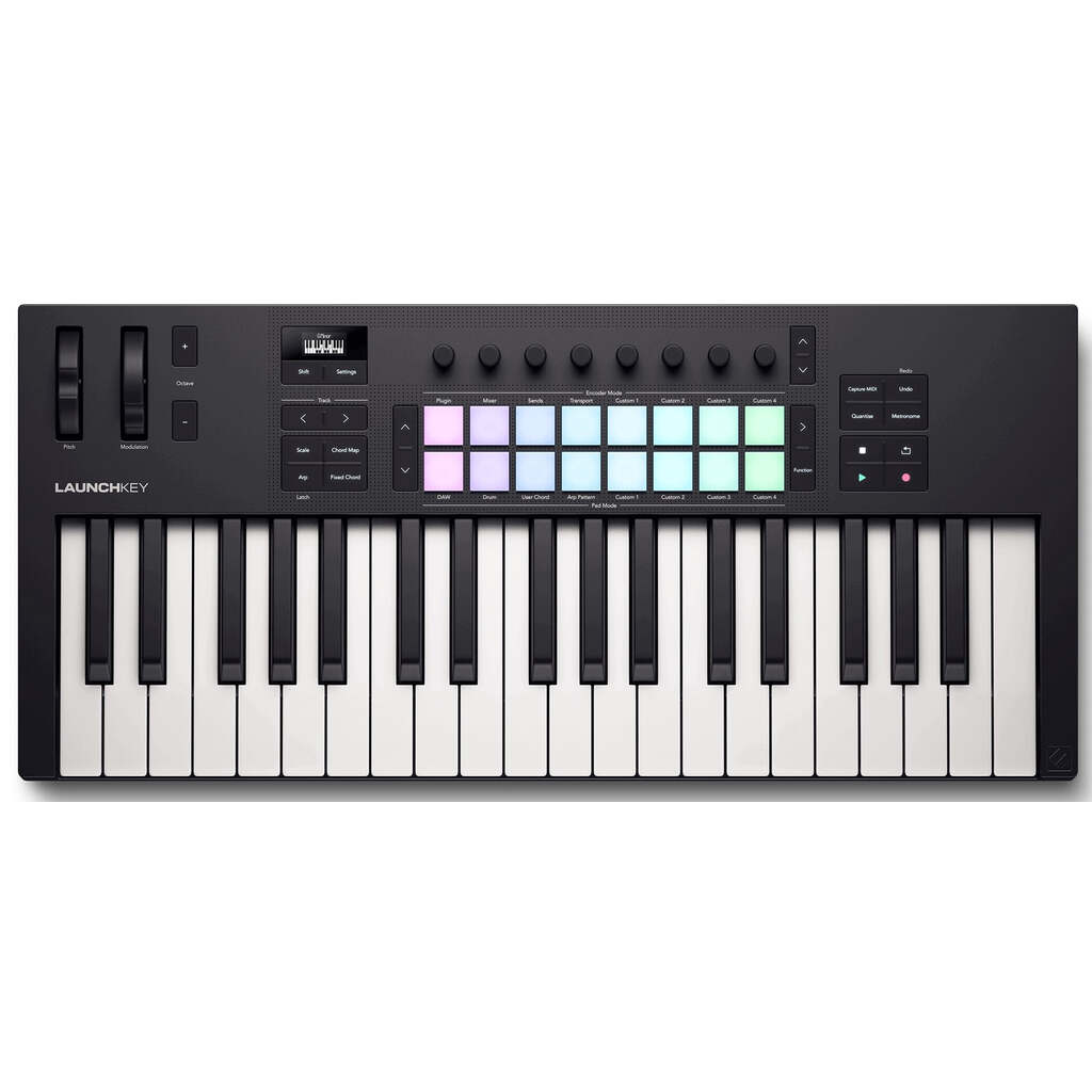 Launchkey 37 est un contrôleur DAW polyvalent doté d'outils de création essentiels. Conçu pour rationaliser votre processus de création, il est doté d'un clavier à action de synthèse et de 16 pads réactifs avec aftertouch polyphonique. La surface de contrôle bien organisée offre une intégration DAW complète, vous permettant de jouer des instruments et de la batterie, de lancer des clips et des scènes, et de contrôler le mixeur, les périphériques et les effets de votre DAW en toute simplicité.