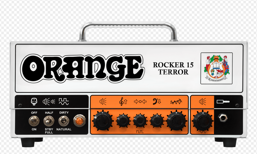 CONTRÔLES (DROITE À GAUCHE): "NATURAL CHANNEL: VOLUME | DIRTY CHANNEL: GAIN, BASS, MIDDLE, TREBLE, VOLUME| CHANNEL SELECTOR, HALF/STBY/FULL POWER SELECTOR| POWER SWITCH"