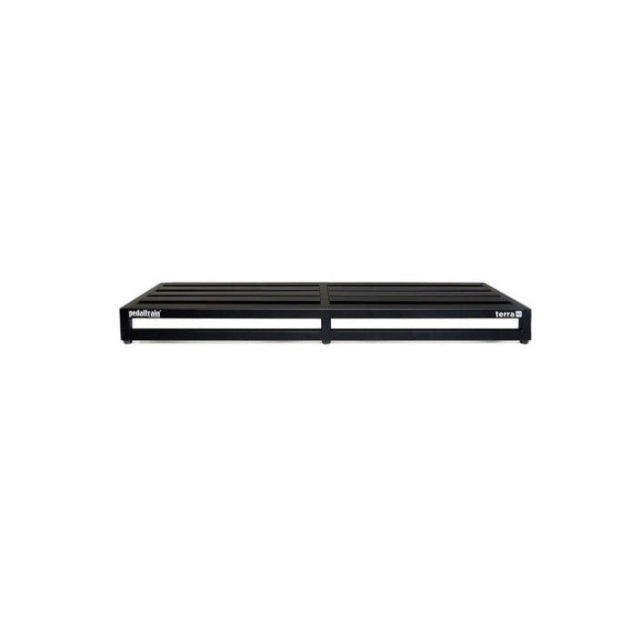 Terra takes the best of Pedaltrain’s patented design and pushes it to new levels. Terra is the largest pedal board Pedaltrain makes. Terra is the perfect size for true pedal junkies and permanent studio installations. Terra features all of Pedaltrain’s latest design improvements including: lightweight aircraft-grade aluminum frame, open-front design (for unlimited flexibility mounting power supplies and switching systems under the pedal board) and modified rail system (which provides the strongest pedal adhesion ever, even for micro-sized pedals). Terra is available for purchase with either Pedaltrain’s fitted soft case (featuring a heavy-duty metal zipper and reinforced stress points) or Pedaltrain’s professional-grade tour case, engineered to be up to 35% lighter than previous models.