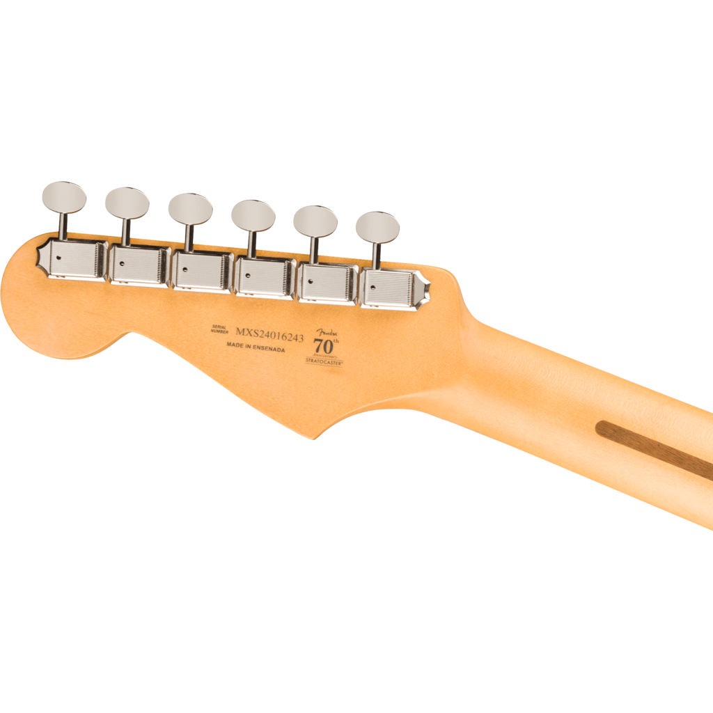 La Player II Stratocaster rayonne du charme intemporel de Fender, mais sous le capot, elle est préparée pour les joueurs d'aujourd'hui. Tout dans le manche est conçu pour une jouabilité rapide et fluide, du profil moderne en "C" à la finition soyeuse en uréthane satiné à l'arrière, en passant par la confortable touche en palissandre ou en érable à rayon de 9,5 pouces avec des bords roulés lisses et 22 frettes medium jumbo. Choisissez parmi les corps en aulne, frêne chambré ou acajou chambré, disponibles dans les finitions Fender classiques et dans des couleurs inédites exhumées des archives. Les micros Alnico V Single-Coil Strat® de la série Player offrent des aigus cristallins, des médiums musicaux et des graves serrés qui rehaussent n'importe quel genre. Le commutateur à lames à 5 voies vous permet de tout composer, des nettoyages vitreux du micro manche au snarl du micro chevalet et tous les points intermédiaires, tandis qu'un trémolo à 2 points et des accordeurs ClassicGear™ assurent une stabilité d'accordage précise pour une flexibilité permettant d'explorer des possibilités sonores infinies.