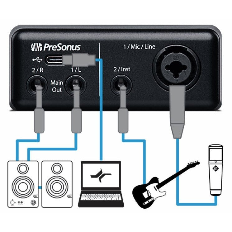 - Bus-Powered: AudioBox GO is powered by your connected USB-C® device so no need for an additional power supply – works great with both Apple® and Android™