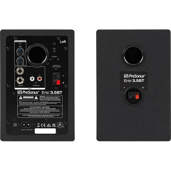 - PreSonus® Eris® 3.5 BTs connect wirelessly using Bluetooth® 5.0 or via a wired connection to virtually any line-level audio source, using rear-panel ¼-inch TRS and RCA inputs and a front-panel, ⅛-inch stereo line input. You also get a convenient (and loud!) front-panel, ⅛-inch stereo headphone jack; connecting headphones mutes the speakers.
