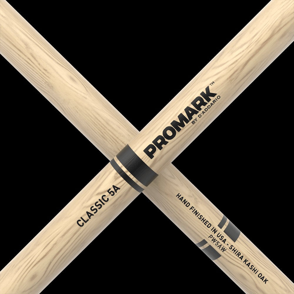 Promark - Baguettes de batterie en chêne Shira Kashi Classic Attack 5A, pointe en bois ovale, paquet de 4 - PW5AW-4P