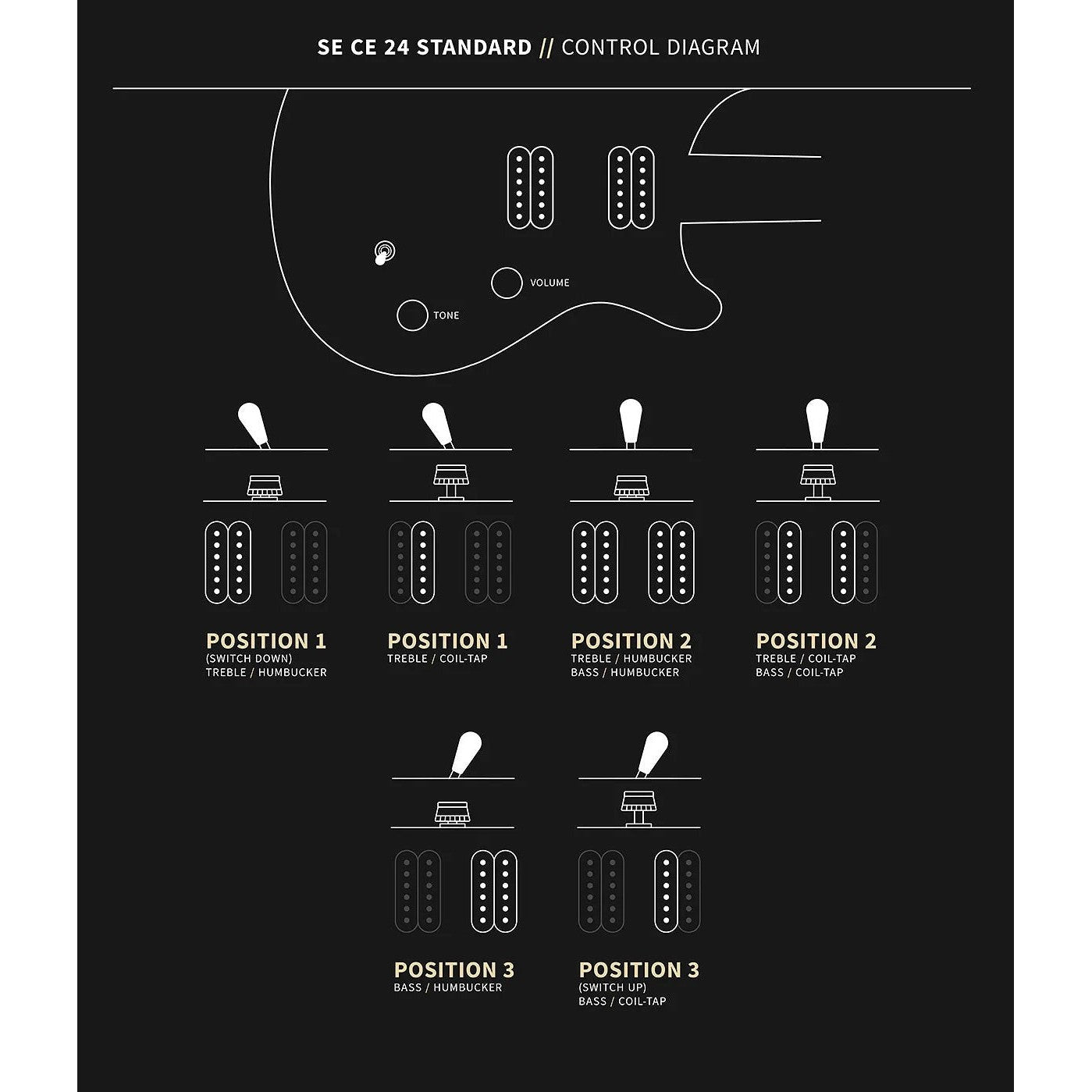 - Introduite en 1988, la CE est devenue un élément essentiel de la gamme de PRS, offrant l'élasticité et la réactivité d'une construction boulonnée. La SE CE 24 Standard est la CE la plus abordable à ce jour. Elle associe un corps en acajou à un manche en érable boulonné. Le corps en acajou est doté d'une fine finition satinée qui donne un instrument très résonant, et la finition semi-brillante du manche en érable offre une sensation de jeu fluide. Les micros « S » 85/15 de PRS offrent des aigus et des graves étendus avec clarté et équilibre, tandis que la commande de tonalité « push/pull » ajoute la polyvalence des « coil taps ».