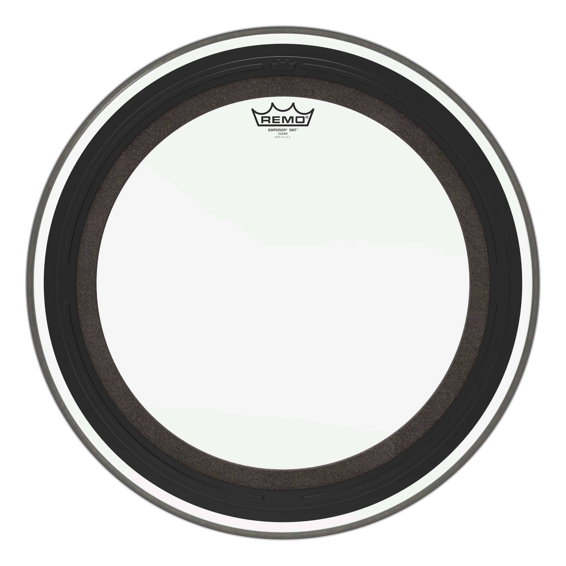 The Emperor® SMT™ Clear bass drumhead is a pre-muffled design featuring Sub Muffl® Technology. It is constructed with 2-plies of 7-mil and 5-mil clear film, and an externally mounted dampening profile with free-floating acoustic foam. It enables the head and drum shell to maintain full sound characteristics with additional attack and low-end frequencies. SMT technology allows a broad tonal spectrum of tuning ranges with controlled high and mid frequencies coupled with deep, powerful low tones. It is a new industry standard and one of the market's most musical and versatile pre-muffled bass drumheads. Ideal for live and recording applications.