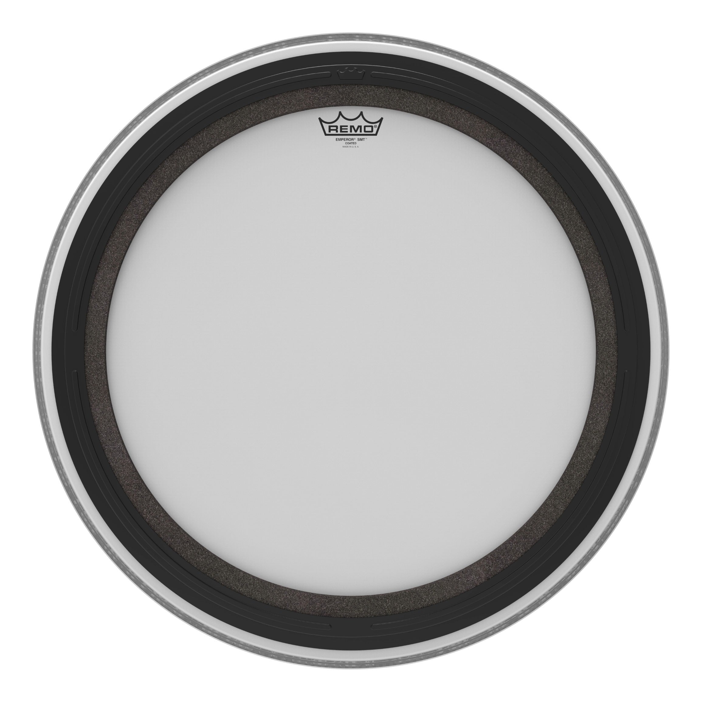 The Emperor® SMT™ Coated bass drumhead is a pre-muffled design featuring Sub Muffl® Technology. It is constructed with 2-plies of 7-mil and 5-mil coated film, and an externally mounted dampening profile with free-floating acoustic foam. It enables the head and drum shell to maintain full sound characteristics with additional attack and low-end frequencies. SMT technology allows a broad tonal spectrum of tuning ranges with controlled high and mid frequencies coupled with deep, powerful low tones. It is a new industry standard and one of the market's most musical and versatile pre-muffled bass drumheads. Ideal for live and recording applications.