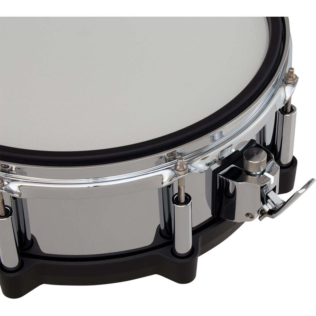 Une structure de pad nouvellement conçue offre un aspect et une sensation naturels, avec un cerceau en caoutchouc placé à l'intérieur du cerceau à triple bride et une hauteur de rebord semblable à celle d'une caisse claire acoustique standard. Le PD-14DSX est également équipé d'un mécanisme de déclenchement permettant d'activer ou de désactiver les caisses claires virtuelles en actionnant rapidement un levier, tandis que le bouton de tension vous permet de régler la tension de la caisse claire d'un simple tour de main. De plus, le bouton comprend un bouton permettant de contrôler les fonctions assignables dans le module.