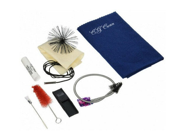 Un écouvillon pour la perce, de la graisse pour liège, une brosse à poussière, une brosse pour embouchure.