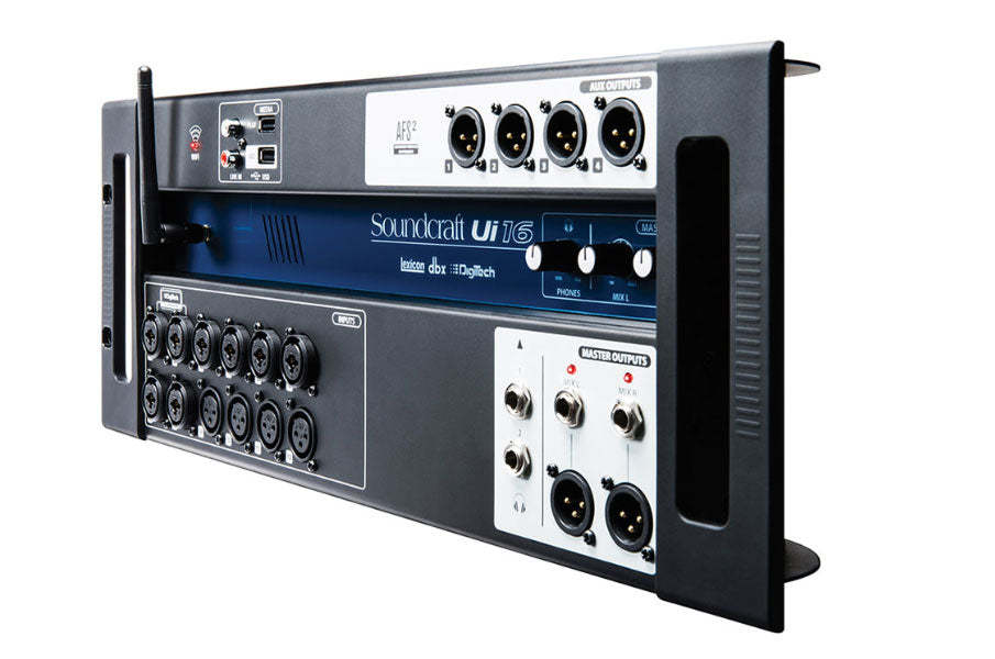 UI16 emballe un système de mixage numérique complet dans un format de stagebox routier-compact et robuste, avec Built-in Wi-Fi et la capacité d'être contrôlé par ne importe quel appareil connecté via un navigateur Web standard - pas les applications, pas de limitations du système d'exploitation, pas de contraintes sur comment et où vous mélangez.
