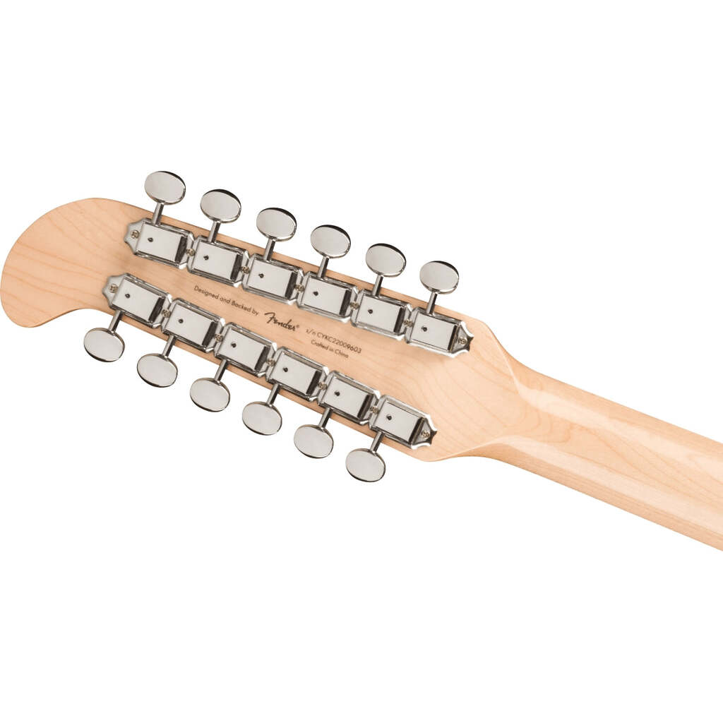 With its iconic offset body shape and rich harmonic character, the Squier® Jazzmaster® XII encourages the most adventurous players to chart a new course of guitar exploration. Featuring dual Fender-Designed alnico single-coil Jazzmaster pickups with 3-way switching and a vintage-inspired “hockey stick” headstock design, this 12-string model doubles down on chime-y tones and timeless style. Other player-friendly details include a graphite-reinforced “C”-shape neck for optimal stability and easy playability, a hybrid string-through-body/top-load bridge for reliable intonation, vintage-style tuning machines for smooth tuning action, and a gloss neck finish for a slick yet confident feel.