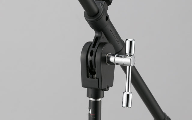 - Boom Tilter: Tama's unique boom tilter clamps the arm holder much more securely than standard designs, which only pinch the holder at 2 narrow points. Instead, the Tama design holds the arm with the entire interior surface of the U-clamp.