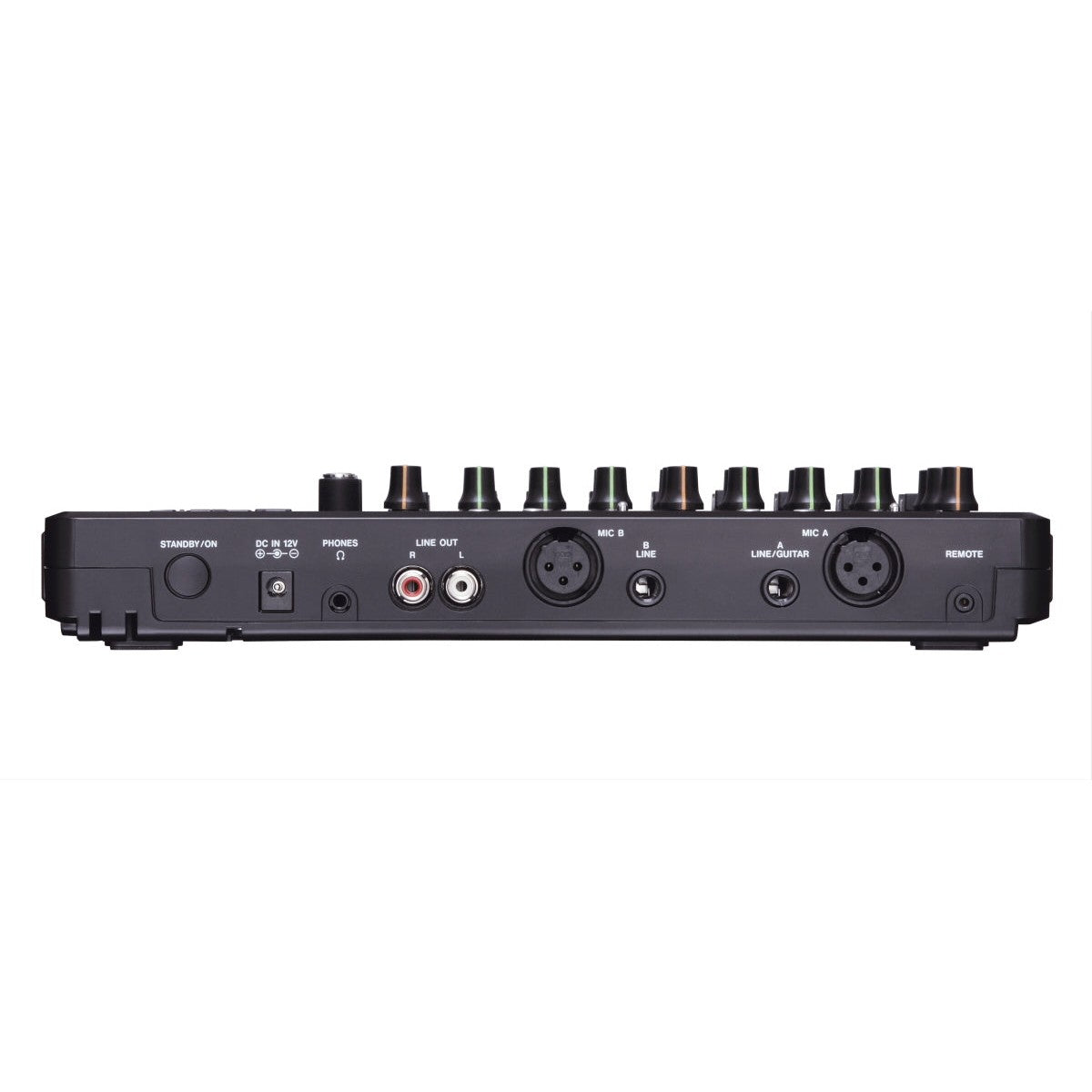 Un couple stéréo de micros statiques est intégré à la face avant du DP-03SD, ce qui est pratique pour enregistrer une répétition, un concert ou des idées musicales à la volée. Le DP-03SD propose également deux préamplis micro de haute qualité avec connecteur XLR et alimentation fantôme pour mes microphones statiques. Des jacks 6,35 mm d’entrée ligne sont également disponibles, et un sélecteur de niveau instrument permet d’enregistrer directement une guitare ou une basse électrique sans boîtier de direct. Un pédalier à trois boutons, le RC-3F, est disponible pour le contrôle et l’entrée/sortie d’enregistrement.