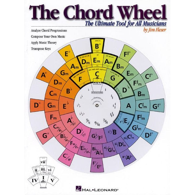 Théorie des accords principaux... en quelques minutes ! La roue d'accords est un appareil révolutionnaire qui met entre vos mains les applications les plus essentielles et les plus pratiques de la théorie des accords. Cet outil vous aidera à : Improviser et Solo – Parlez de côtelettes ! Comprenez la structure clé comme jamais auparavant ; Transposer les touches - Transposez instantanément n'importe quelle progression dans chaque touche ; Composez votre propre musique - Regardez votre écriture s'épanouir ! Aucune lecture musicale n’est nécessaire. C’est le genre d’appareil que les musiciens de n’importe quel instrument peuvent utiliser pour améliorer leur compréhension musicale. Les relations entre accords et touches sont indissociables, et l’apprentissage de ces relations est indispensable pour devenir un musicien à succès. - Alan Remington, département de musique de l'Orange Coast College.