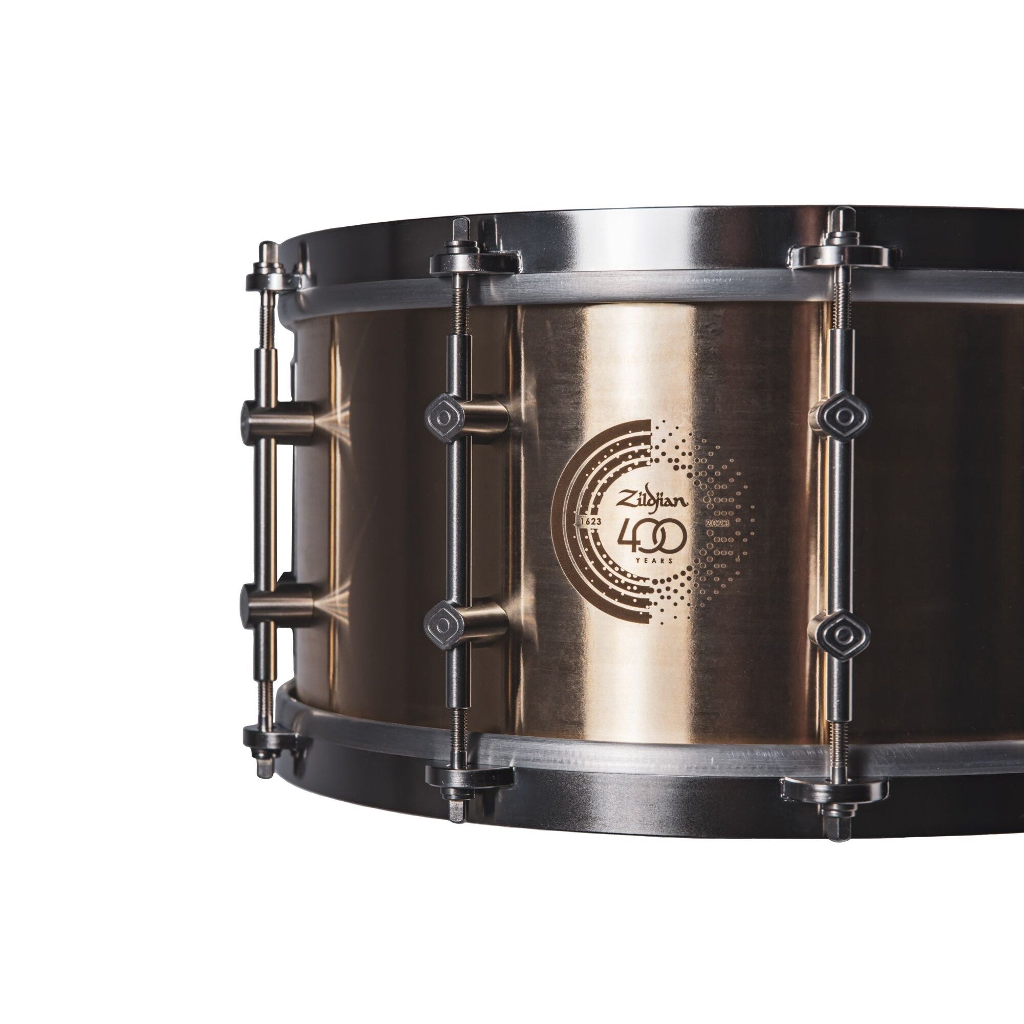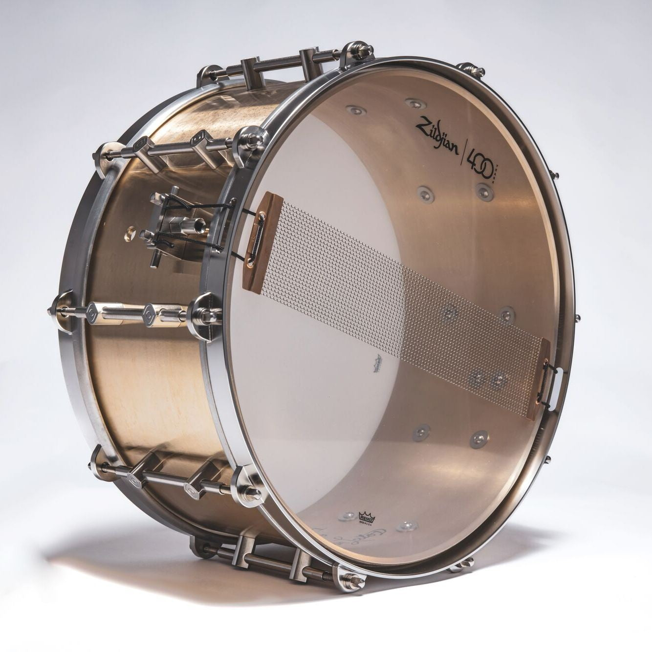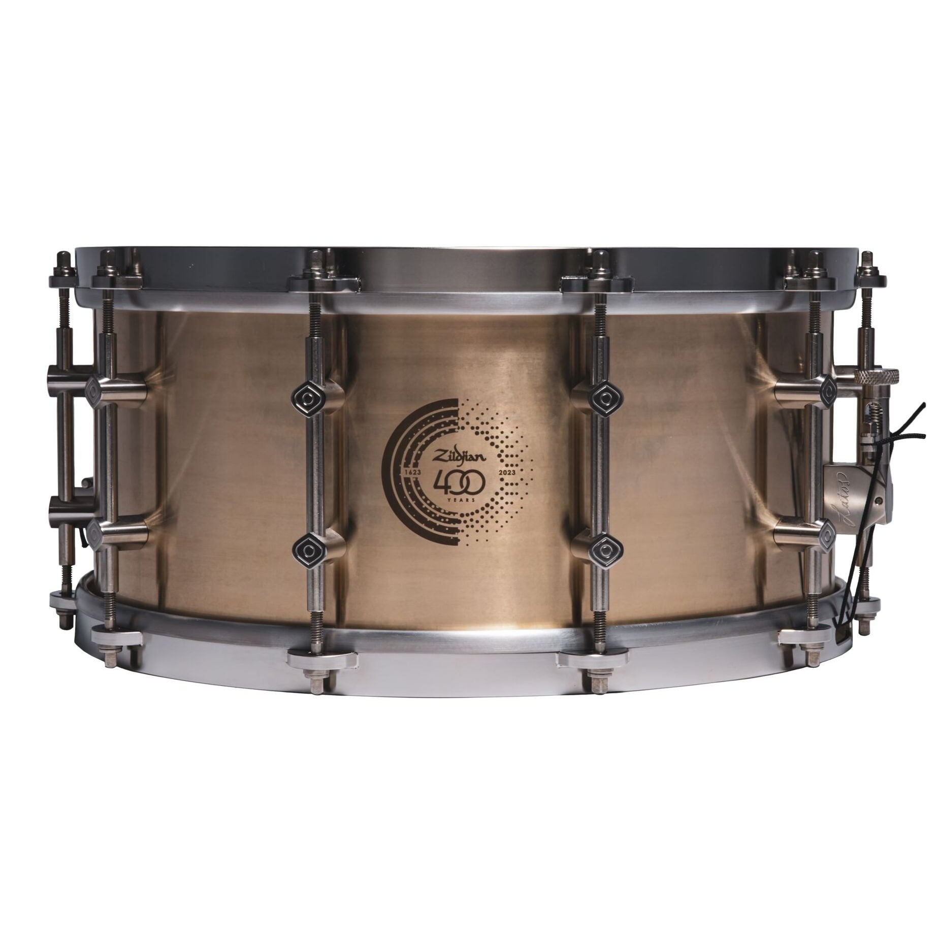 Zildjian invites you to experience the passion and craftsmanship that has gone into the creation of this snare drum, and are confident that it will inspire you in your musical journey. This snare drum features a new, innovative shell casting process, using 100% pure Zildjian alloy direct from our cymbal foundry. Developed in collaboration with Latos Drums, the sound qualities of B20 Zildjian bronze inspired us to re-imagine a cast bronze snare from the ground up. While the Zildjian 400th Anniversary Alloy Snare Drum maintains the extreme volume ceiling, projection, and sonic power that cast bronze drums are known for, this drum was designed to be an expressive, deeply versatile instrument, and is equally at home behind an orchestra, in front of walls of amplifiers, in a jazz quartet, or as a platform for creative modern muffling and recording techniques.