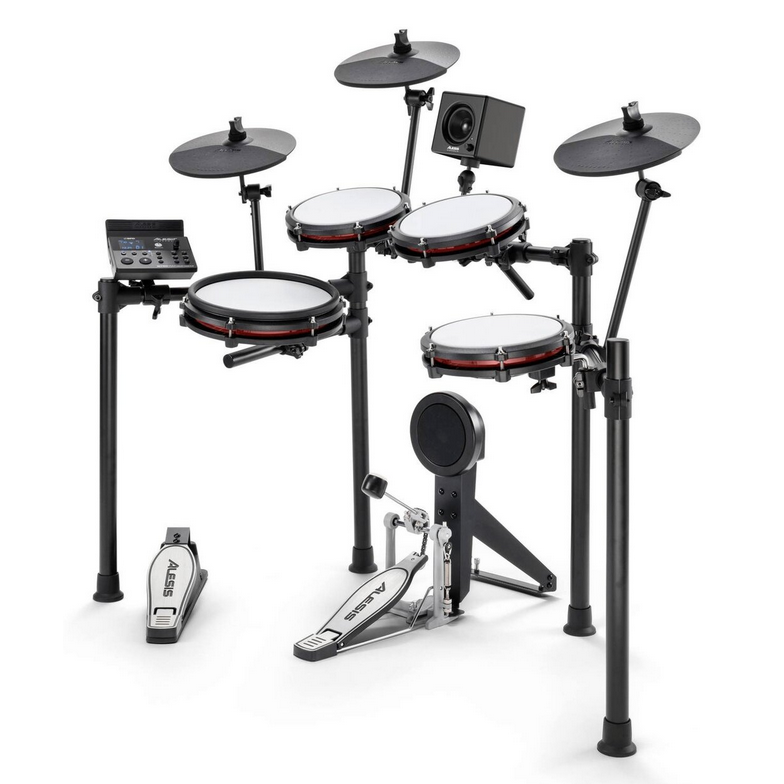 The Nitro Amp mounts directly to the Alesis Nitro drum rack. This positions it at ear level, making it comfortable to listen to at reasonable volumes while saving space and providing a streamlined, integrated monitoring option.