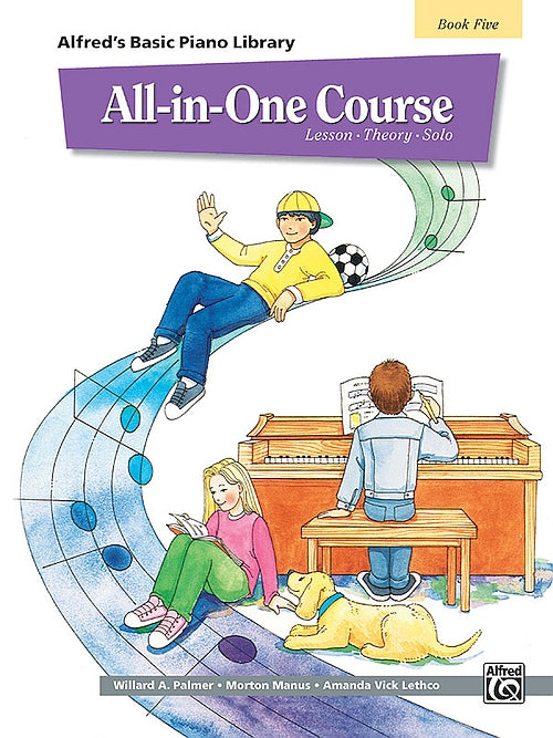 The "All-in-One Course for Children" takes all of the pages from "Alfred's Basic Piano Library," Lesson Books 1A, 1B, and 2, plus selected pages from Theory, Recital and Fun Solo Books and combines them into part of a sequential five-book series. At the completion of Book 5, the student will be ready to continue into Level 3 of "Alfred's Basic Piano Library" or "Alfred's Premier Piano Course."