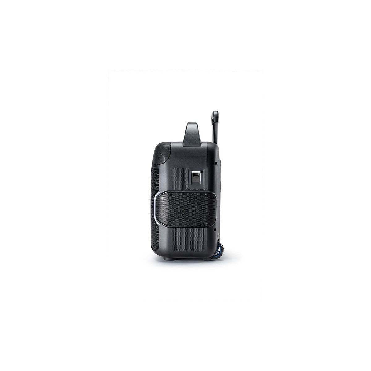 - Uber FX Mk2 is incredibly easy to transport with its telescoping handle and wheels; it also has a handy top storage compartment, side bottle opener and front-panel lighting. There are also 2 USB charging ports to keep your devices topped up.