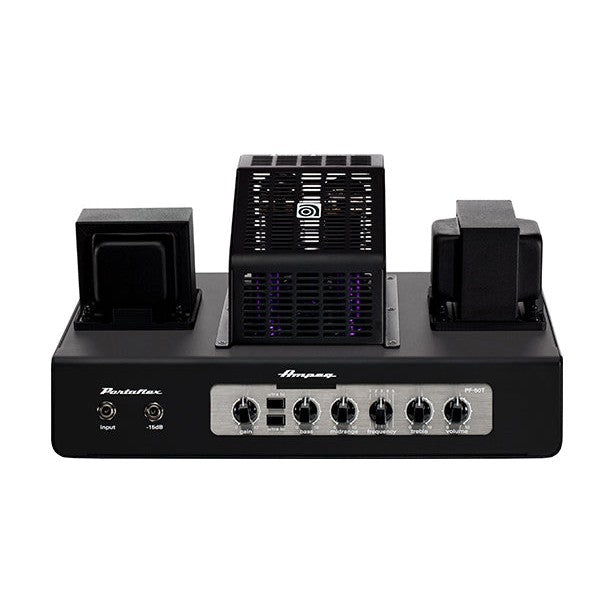 The legendary tone and portability of the all-tube Ampeg Portaflex amplifiers is faithfully reproduced in the PF-50T. This all-tube Portaflex head provides a harmonically rich and studio-worthy 50 watts of pure Ampeg tone to satisfy the most discerning bass player. Featur ing simple user-adjustable bias adjustment for easy tube replacement and pre-amp and transformer balanced direct outs for maximum versatility. Plus, no speaker load is required for silent recording or even use as a dedicated tube DI. Pair it with the PF-112HLF for the ultimate compact all-tube bass rig.