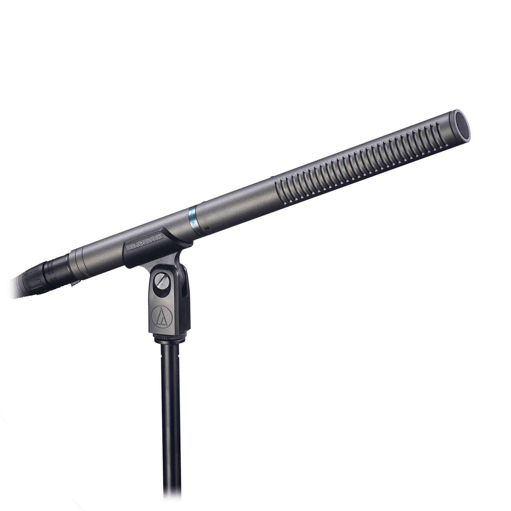 Audio-Technica’s AT897 is designed for field audio acquisition in film/TV/video production, professional recording, wildlife recording and broadcast applications. It mounts conveniently on a DV camcorder without adding noticeable heft, and remains out of the frame even with compact digital cameras. This high-performance short shotgun offers outstanding long-distance audio pickup due to narrow acceptance angle of line + gradient design. It also features smooth, natural-sounding on-axis audio quality and excellent off-axis rejection of sound arriving from the sides and rear of mic.