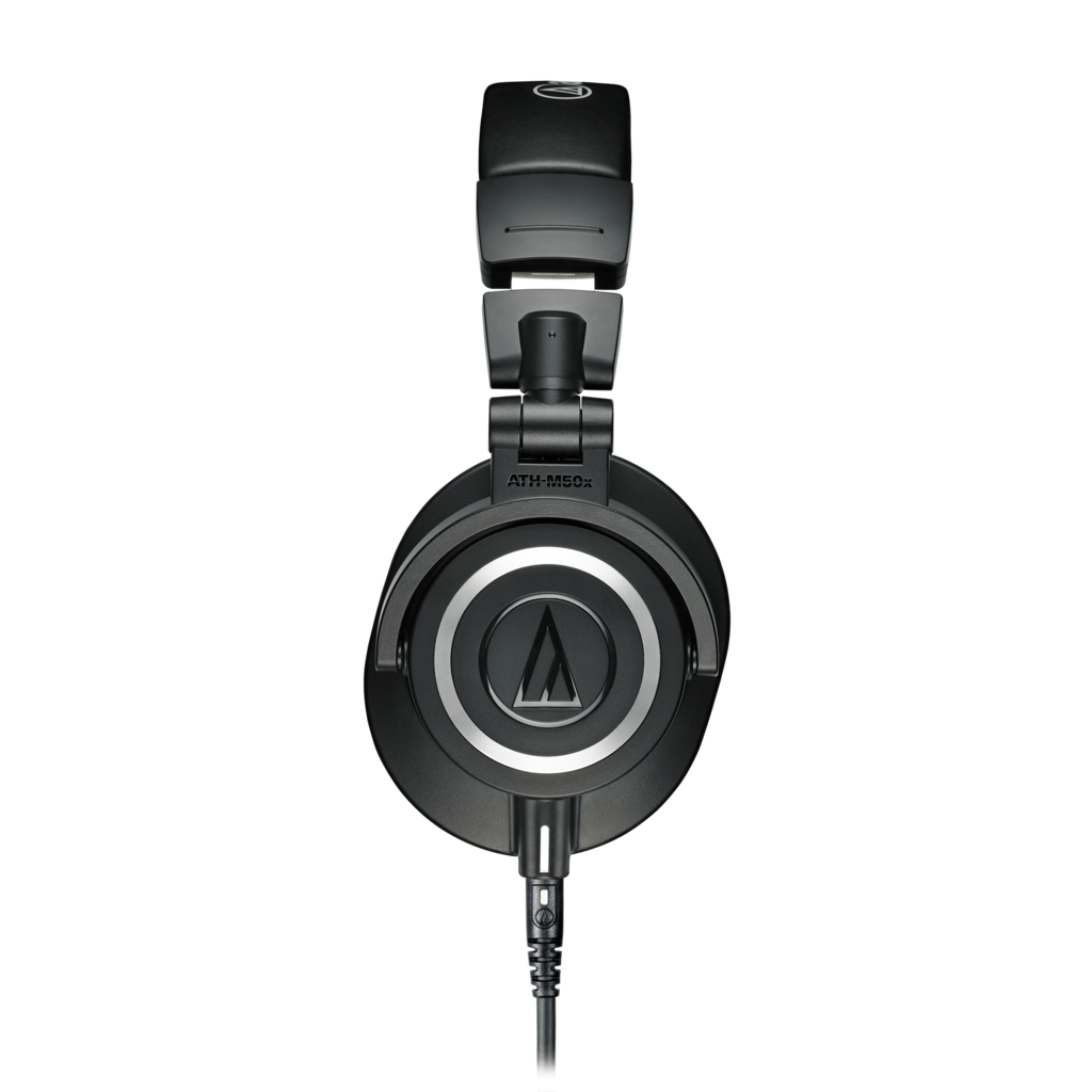 Constructed with professional-grade material, the ATH-M50x earpads and headband offer utmost durability and comfort. The ATH-M50x features 90° swiveling earcups for easy, one-ear monitoring, and are collapsible and fold flat for seamless traveling, making them great portable headphones.
