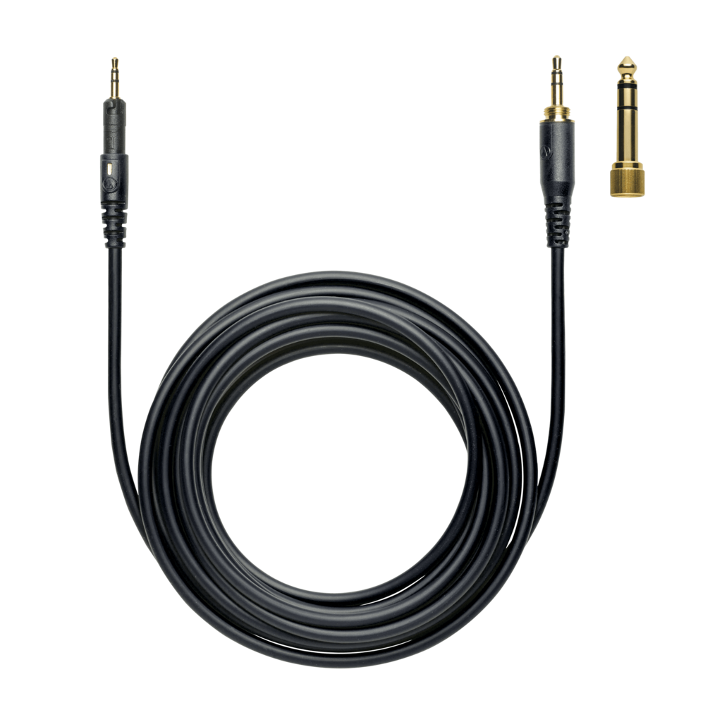 Included Accessories: The ATH-M50x comes with a protective carrying pouch, 6.3 mm (1/4") screw-on adapter, and three interchangeable cables (detachable 1.2 m - 3.0 m (3.9' - 9.8') coiled cable, detachable 3.0 m (9.8') straight cable and detachable 1.2 m (3.9') straight cable).
