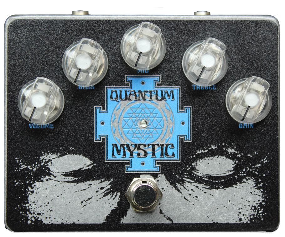 The Quantum Mystic Overdrive was developed working closely with Mike Scheidt from the Portland Oregon band , Yob. Mike is known for great tone and groundbreaking music in the metal and doom community. We decided to adapt his favorite pedal from the seminal early YOB records into an updated and upgraded circuit. The Quantum Mystic is an opamp based distortion/OD featuring a 3 band active EQ and germanium clipping. It draws cues from Mike favorite old Grey Distortion, boiled down by a wizard, tweeked, manipulated, upgraded and using both mine and Mike’s ear, we sculpted the form you now hear and feel. Use the active Eq to cut frequencies to represent the old school sounds, or use the EQ to boost the final gain stage to go into the heavily saturated and distorted tones of the future. Dial back the distortion, boost the volume and use the active EQ to find sparkling clear boost tones. Dime it all and get a ball molten lead that propels the Universe Throb. Needing a captivating presentation, we summoned the artwork of another underground legend, Arik Roper. We pulled together something pretty special and I think you all will like this one. This pedal operates on a Standard 9VDC power supply. No battery connection.