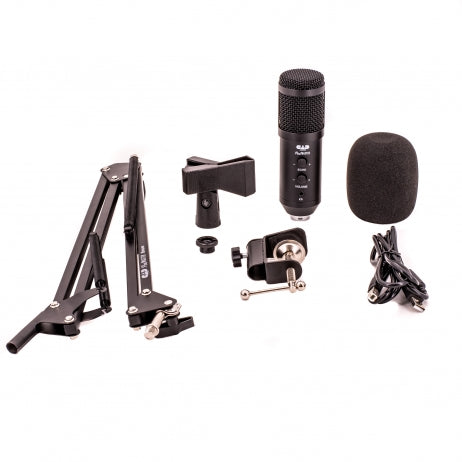 Includes Broadcast Style Boom Arm Stand, Mounting Clip, USB cable and Windscreen