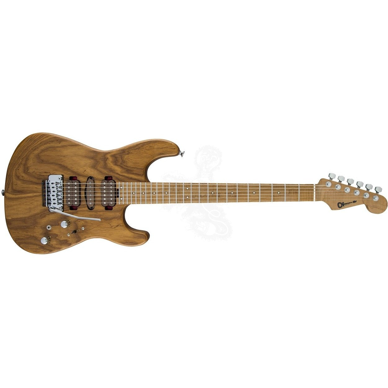 Electronics Bridge Pickup: Charvel® Custom MF Humbucking Middle Pickup: Charvel® Custom MF Single-Coil Neck Pickup: Charvel® Custom MF Humbucking Controls: Volume, Tone Pickup Switching: 5-Position Blade and 2-Position Toggle with Multiple Switching Options Pickup Configuration: HSH Body Body Finish: Satin Body Shape: San Dimas® Style 1 Body Material: Caramelized Ash Hardware Bridge: Recessed Charvel® Locking Tremolo Bridge Hardware Finish: Chrome Tuning Machines: Sperzel® Locking Pickguard: None Pickup Covers: Brown Control Knobs: Dome-Style Luminlay® Numbered Switch Tip: Black Neck Neck Material: Caramelized Flame Maple Neck Construction: Bolt-On with Graphite Reinforcement Neck Finish: Hand-Rubbed Satin Urethane Neck Shape: Speed Neck with Rolled Fingerboard Edges Neck Binding: None - Rolled Fingerboard Edges Scale Length: 25.5" (648 mm) Fingerboard Radius: 12" to 16" Compound Radius (304.8 mm to 406.4 mm) Fingerboard Material: Caramelized Flame Maple Number of Frets: 24 Fret Size: Jumbo Stainless Nut Width: 1.6875" (42.86 mm) Position Inlays: Ebony Ring with Maple Dot Center Truss Rod Nut: Heel-Mount Truss Rod Adjustment Wheel Headstock: Licensed Fender® Stratocaster® Neck Plate: None Miscellaneous Strings: Nickel Plated Steel (.010-.046 Gauges)