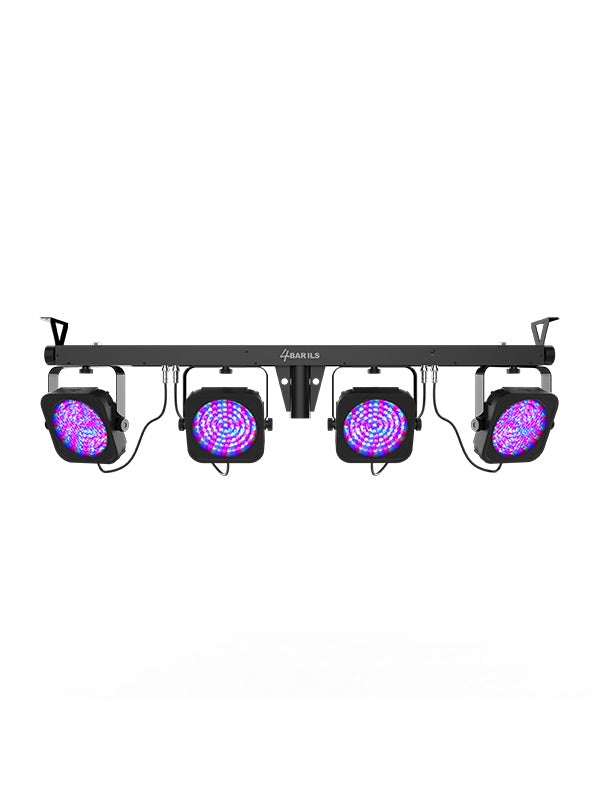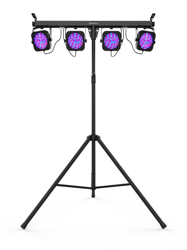 4BAR ILS is a complete wash lighting solution designed for mobile entertainers. The ultra-convenience of the included tripod, wireless footswitch, and carry bags allow you to set up and tear down in minutes. But the ease and versatility of the 4BAR ILS go to higher levels with the addition of compatibility with the Integrated Lighting System (ILS) that makes creating coordinated light shows across an unlimited number of different fixture types easy and fast means control is easier than ever. D-Fi USB compatibility for wireless master/slave and DMX control is also on board. Achieve total room or stage coverage with 4BAR USB’s four individually adjustable heads – create larger, synchronized light shows with other 4BAR fixtures in master/slave mode. Generate shows with easy-to-access, built-in, automated programs, or easily control static colors and automated programs with the optional IRC-6 remote.