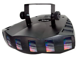 The Derby™X is a DMX-512 LED derby effect light, featuring individual control of all 6 LED clusters. Additional features include blackout/static/strobe, built-in automated and sound activated programs, and linkable power for up to 27 units.
