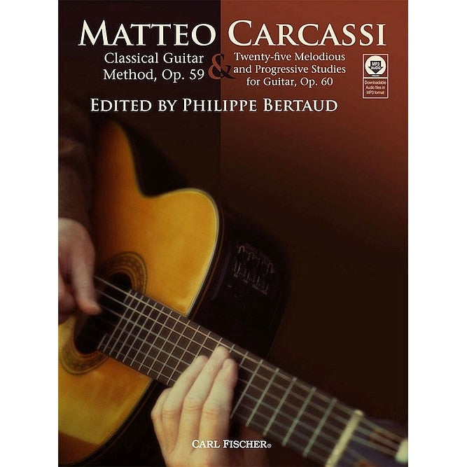 Professional guitarist and teacher Philippe Bertaud has meticulously edited and revamped the classic Carcassi guitar method for use by today's guitar student. Bertaud's sensitive reworkings of the method retains the original intent, but also adds many modern conventions in the instruction of the classical guitar. As an added bonus, this book includes MP3's containing recordings of all 25 studies of the Carcassi op. 60 beautifully performed by Bertaud. This combined edition of Matteo Carcassi's Classical Guitar Method, op. 59 and Twenty-five Melodious and Progressive Studies for the Guitar, op. 60, along with the included digital download make this new edition of the Caracassi method an indispensable addition to the library of any student or teacher of classical guitar.