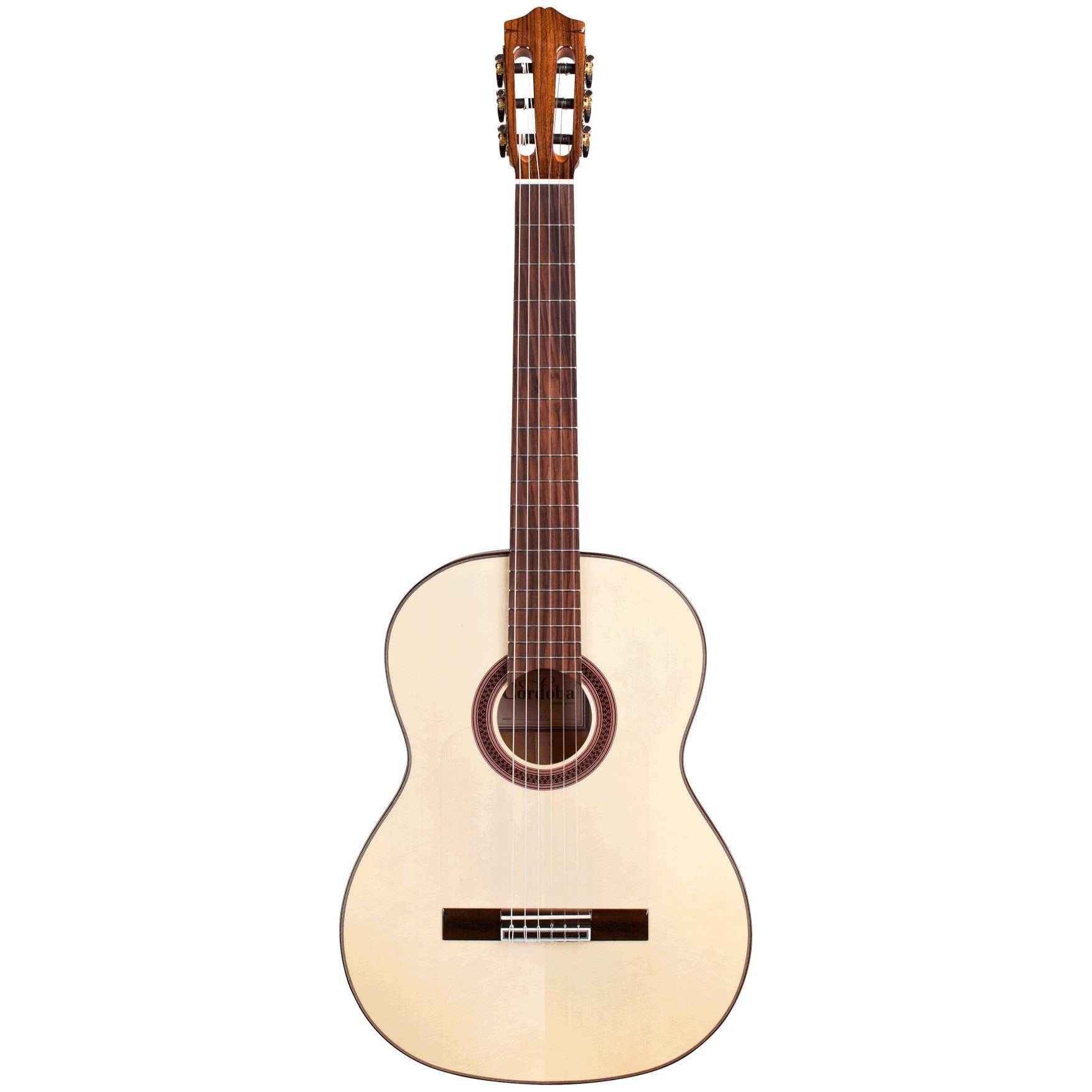 The F7 is our entry-level flamenco model featuring the traditional combination of a solid European spruce top paired with cypress back and sides. It's a perfect fit for both beginner and intermediate flamenco players. Incredibly lightweight, the F7 is built in the Spanish tradition with a slightly thinner body depth than a classical guitar. Additionally, its flat neck angle gives this guitar low action, and the bright, snappy tone characteristic of flamenco guitars. A clear flamenco-style tap plate comes installed on the top for an added layer of protection and like all Córdoba guitars, the F7 includes a two-way truss rod inside the neck for action adjustment and long term stability.