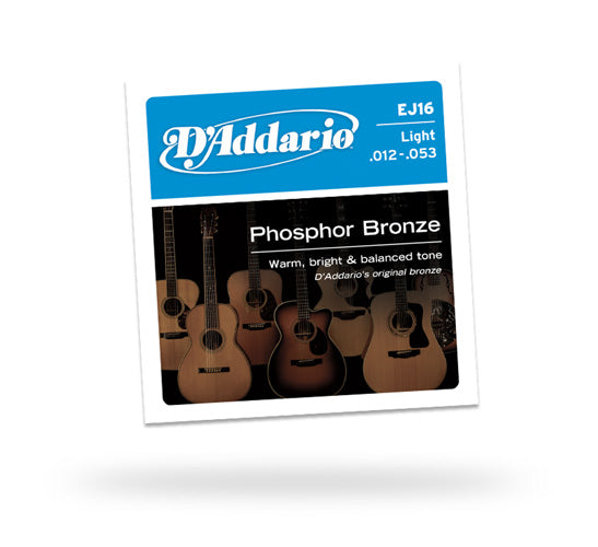 D'Addario Phosphor Bronze Acoustic Guitar strings are acclaimed worldwide for their superb, long-lasting tone. Phosphor Bronze was introduced to string making by D'Addario in 1974 and has become synonymous with warm, bright, and well balanced acoustic tone. D'Addario's most popular acoustic guitar strings.