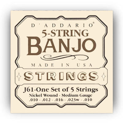 J61, DAddarios most popular 5-string banjo set, provides the ideal balance of playing tension and bright, projecting tone.