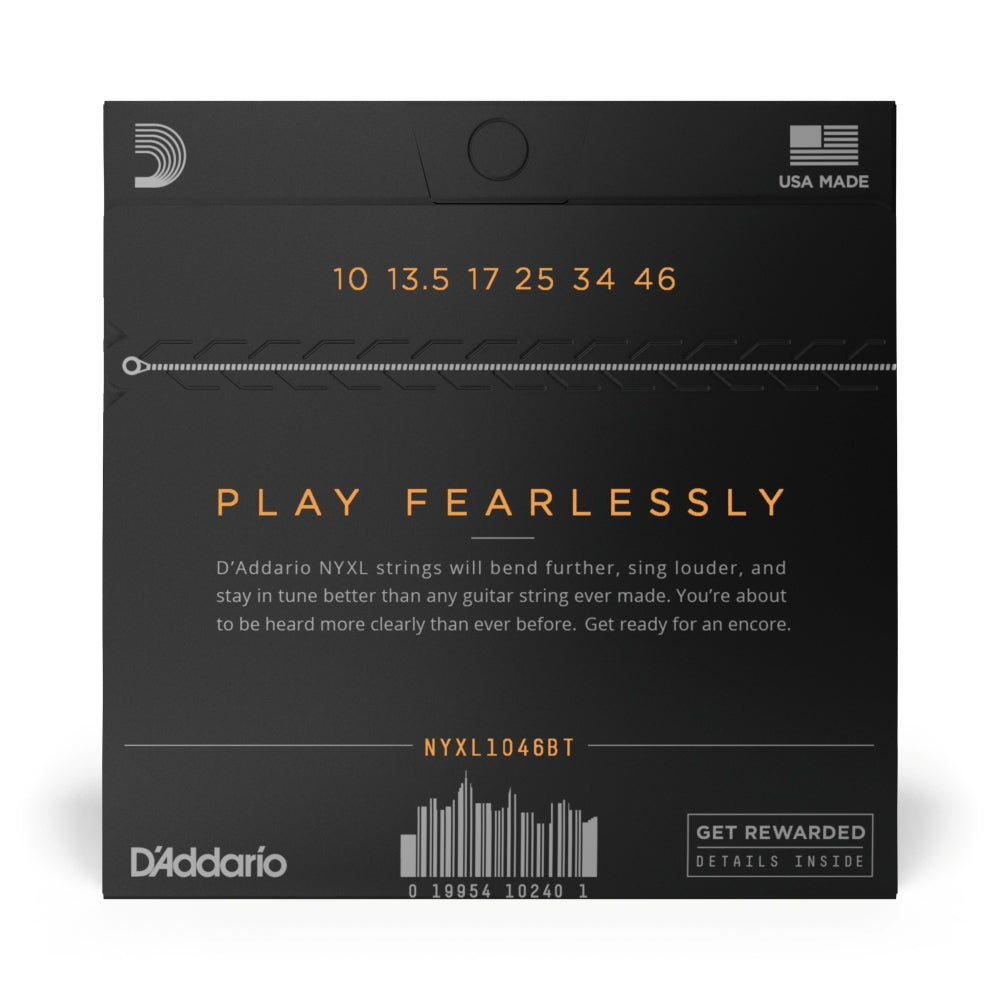 NYXL1046BT Balanced Tension sets allow for evenly balanced bending, strumming, fretting, picking, and plucking: Plain Steel .010, .0135, .017, Nickel Wound .025, .034, .046