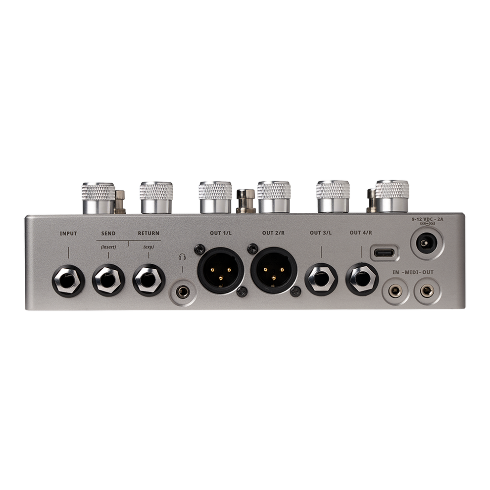 - Main Outputs: 2 1/4" outputs and 2 XLR outputs with the latter featuring an integrated, software-controlled ground lift. These outputs allow for stereo effects, split wet/dry signals, or multiple amplifier connections, delivering an immersive sonic experience.