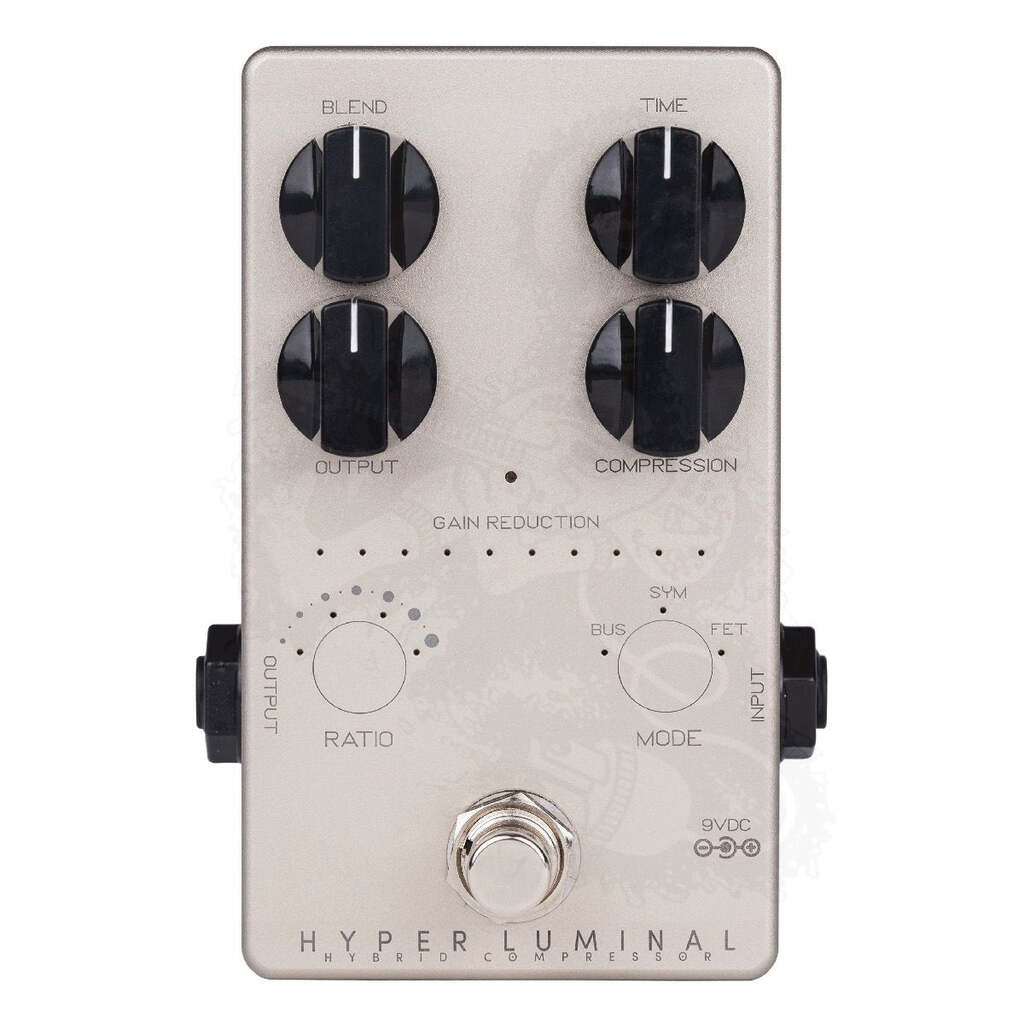 The Hyper Luminal Compressor features the first hybrid design in a compressor pedal: an analog VCA controlled by a digital side-chain allowed us to capture and include the characters of some of the most legendary compressors in history while keeping the signal path completely analog.