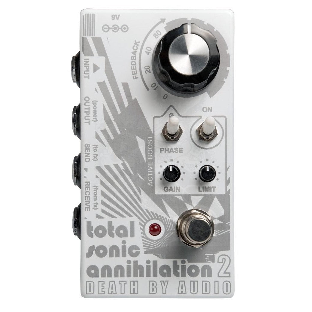 If you've used a feedback loop pedal before, (like the 1st edition of the Total Sonic Annihilation) then you know the vast world of insane and wild sounds you can get. With this new updated version of the original, the ACTIVE BOOST maximizes usability for many applications where the original fell short. For example, if the effect in the feedback loop is out of phase with itself, the loop would turn the pedal into a volume or blend pedal and be somewhat disappointing. With the TSA2, just flip the PHASE switch and all of a sudden those once dormant possibilities are awakened! The BOOST also has a boatload of gain to awaken even the faintest effect into an unearthly behemoth, and a LIMITER to tame the most unruly beast into a purring kitten. Experiment with as many different pedals in the FEEDBACK loop for unique and incredible results!