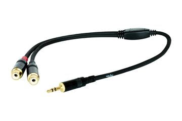 3 Foot Performance Insert Cable - 1/8 mini TRS to 2x RCA Connectors. Performance Series insert cables are made to split stereo signals to two separate connectors for mixer inputs or recording devices. 1/8" mini TRS to 2x RCA.