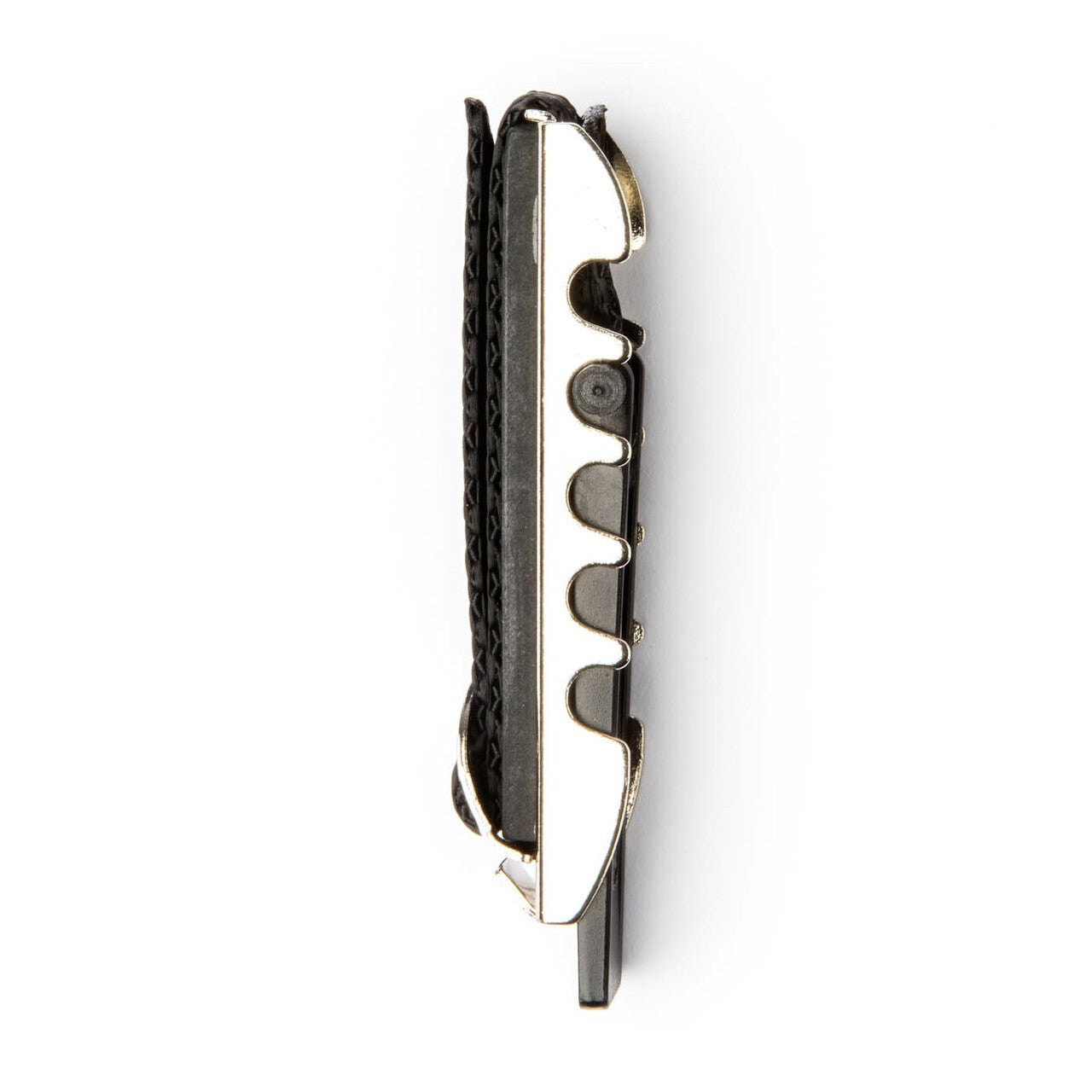 The nickel-plated Jim Dunlop Professional Toggle Action Capo is light and simple to use, featuring an adjustable strap and a sleek ergonomic profile that won't hinder your finger work or scratch up your guitar neck. Designed for guitars with flat-radius fretboards.