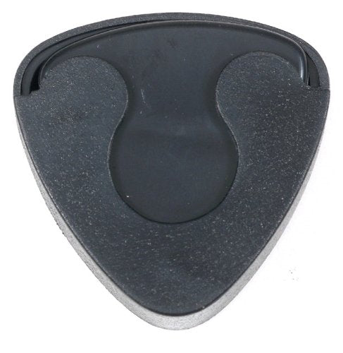 Spring-Loaded, sleek black pick holder keeps picks close at hand