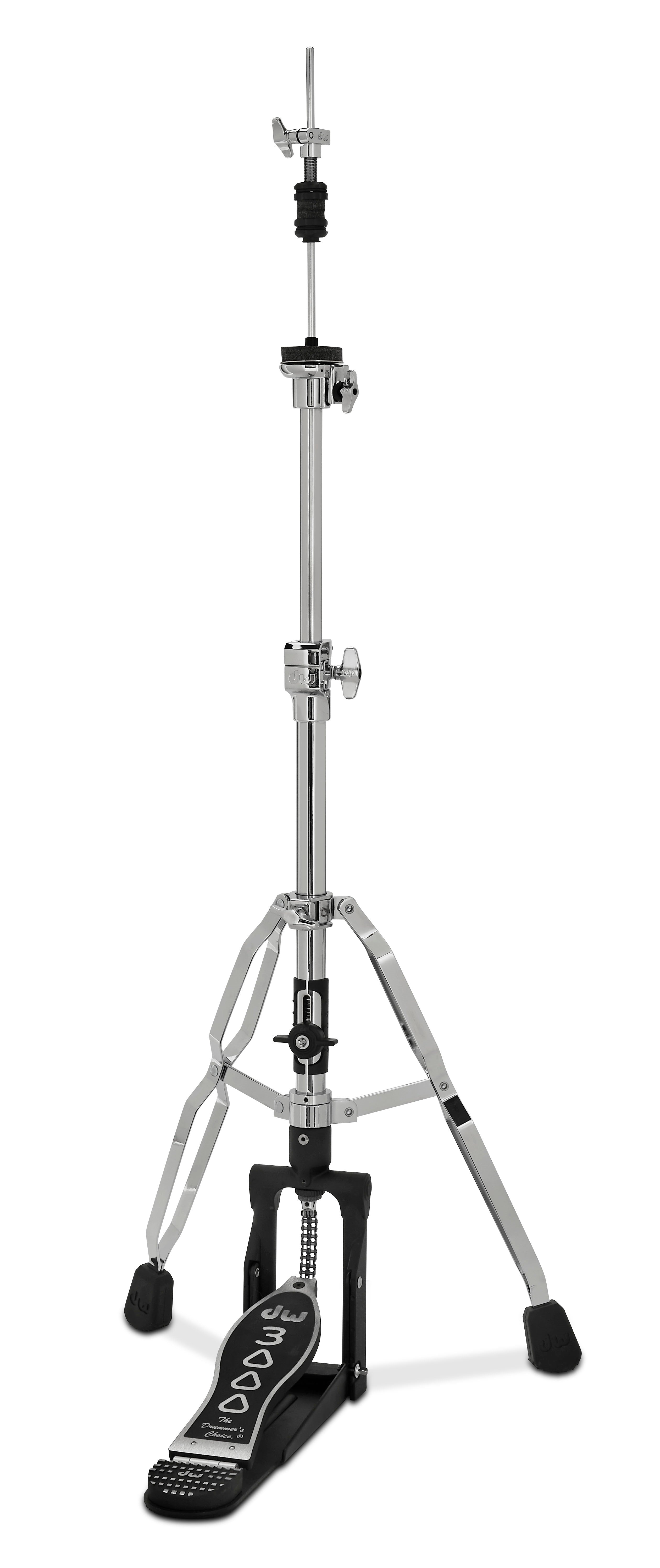 The DW 3000 Series 2-leg hi-hat stand is a medium-weight, stage-ready stand designed for every player. Features include a lockable, folding base plate, compression spring tension adjustment, heavy-gauge chain linkage and lateral cymbal seat adjustment. The 2-leg design makes this stand perfect for drummers using double pedals and those who want to reduce clutter in their setup and leave extra space for re-positioning their stands.