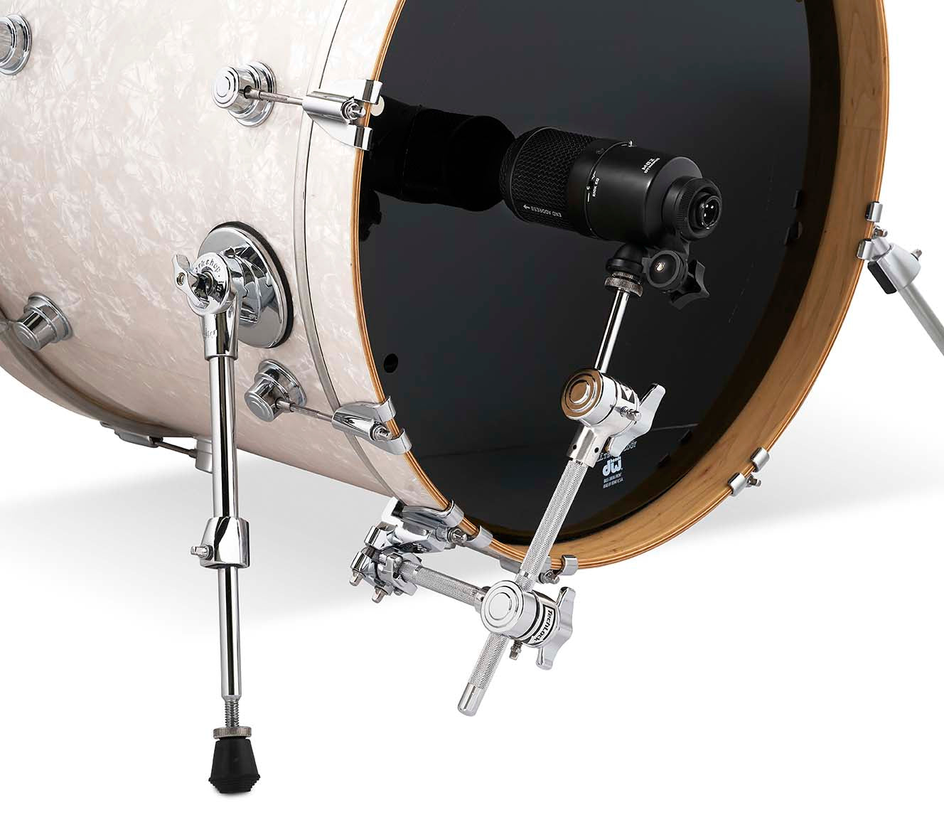 Add a microphone to any DW bass drum in seconds with this ultra-sturdy, stand-free microphone attachment. A dual-pivoting assembly includes a 6.5” long knurled mic arm with standard 5/8” (27 tpi) integrated threads, complete with universal mic clip. Toothless tilters with techlock™ allow for exact positioning on either the resonant or batter side of the bass drum via an innovative 2141 claw hook clamp that securely grabs both sides of any DW or PDP bass drum counter hoop.