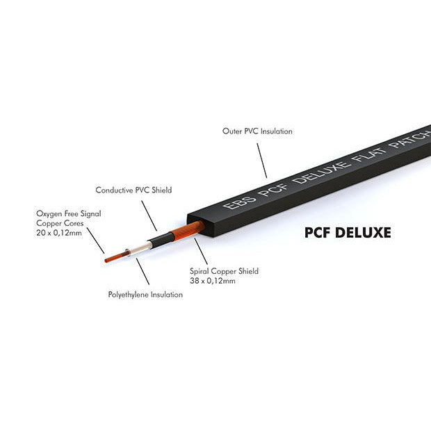 The EBS flat patch cable is an original design by EBS. Due to the clever space saving design, the cables have become the patch cable-to-go for musicians all over the world. If you have ever struggled with limited space on your pedalboard, we share the pain with you. To end the frustration EBS has designed the truly unique, super compact and affordable EBS Flat Patch Cables. Cables that won’t let you down on sound and flexibility, and at the same time reduce the space needed between pedals to a minimum. The PCF Deluxe (PCF-DL) series is the most affordable alternative and is an improved version of the original design. Double shielded cables and very low resistance keep your signal path clean and strong all the way through the pedalboard. Very compact size and flexible cables ensure effective use of ALL space on your pedalboard. Available in four lengths to cover your needs; 10, 18, 28 and 58 cm.