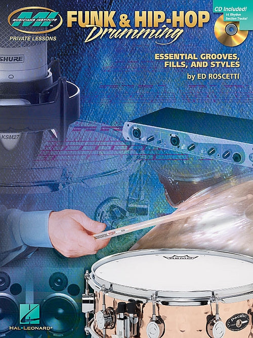 A “one-on-one” lesson with MI instructor Ed Roscetti, this book/CD pack teaches the feel, grooves, fills and styles you need to know for funk and hip-hop drumming. Includes lessons on: feeling the downbeats; syncopated backbeats; in between straight and swing; feeling the upbeats; three ways to explore and play time; hip-hop shuffle; straight time; moving the sixteenths; and more. The accompanying CD contains tracks for demonstration and play-along.