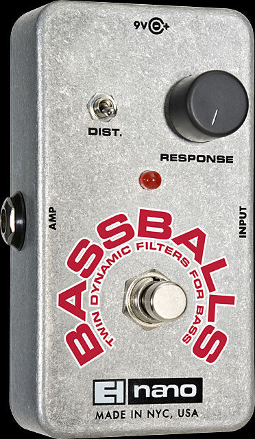 Not one, but two narrow filters sweep your tones under control of the envelope, generating very unique vocal-like sounds. A distortion switch enriches the harmonics. The response control varies the sweep range determined by your attack. Not only designed for and great on bass guitar, but also very funky on guitar.
