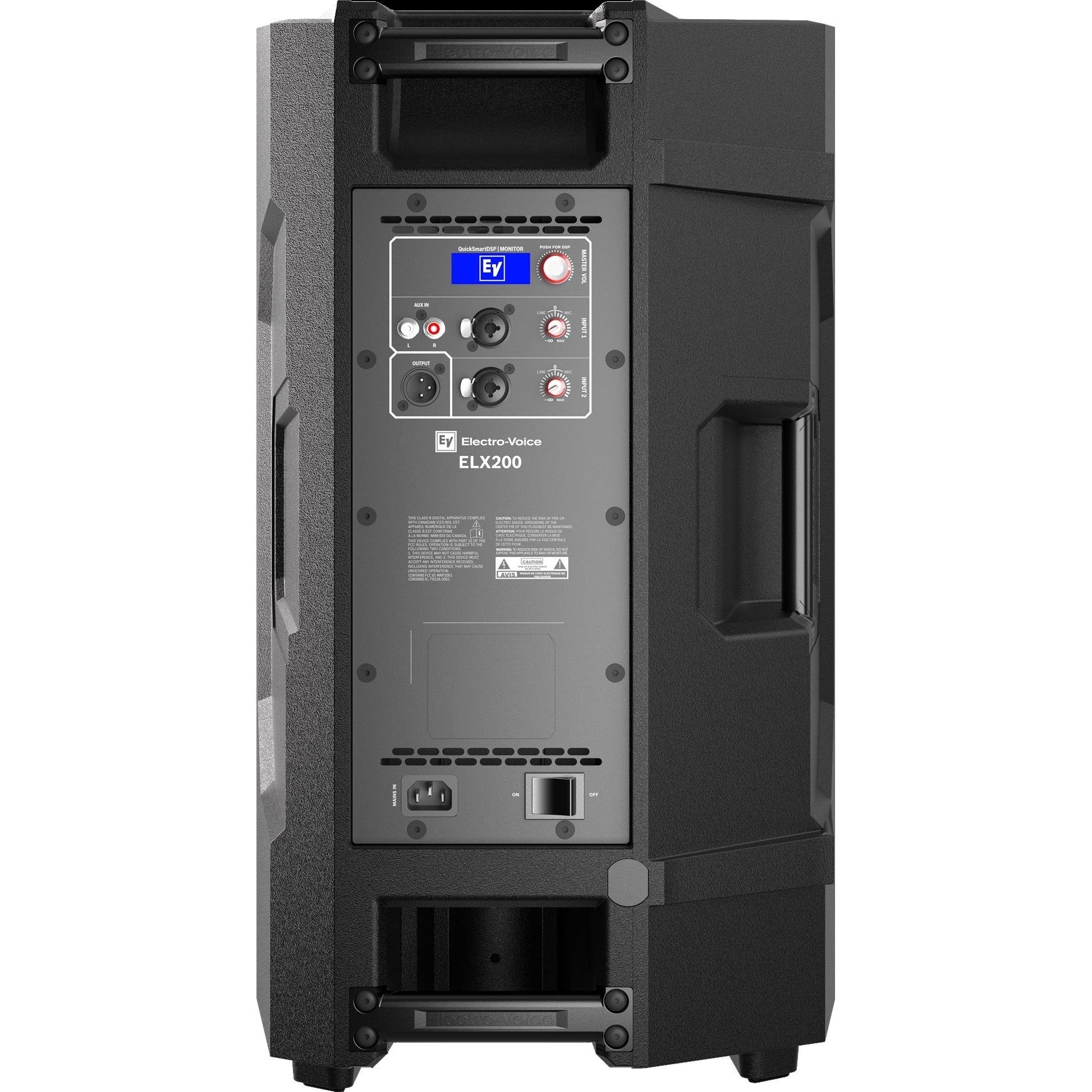 ELX200-12P 12" Powered Loudspeaker EV QuickSmart Mobile application: quickly and wirelessly configure, control and monitor up to six ELX200 loudspeakers simultaneously, and receive immediate notification during critical performance conditions. Bluetooth® is available in select countries. QuickSmartDSP features best-in-class processing. Easy setup via four presets, sub/top system-match, three-band EQ, five user-programmable presets, visual monitoring of limiter status, input level control and meters, and master volume control to optimize gain structure, all via LCD. High-efficiency 1200 W Class-D power amplifier delivers up to 130 dB peak SPL utilizing transducers designed and engineered by EV. EV-patented Signal Synchronized Transducers (SST) waveguide design provides precise and consistent coverage, minimal distortion, and maximized acoustical loading. Professional-grade hardware: three M10 threaded mounting points for forged eyebolts, integrated pole-mounts and the proven ZLX three-handle design for easy lifting. ELX200-12P features high-efficiency Class-D power amplifiers (up to 1200 W) with integrated QuickSmartDSP, and delivers up to 130 dB SPL utilizing transducers designed and engineered by EV (12-inch EVS-12M woofer coupled with a DH-1C 1-inch titanium compression driver). Powered full-range models allow easy setup via four presets (Music, Live, Speech, Club), sub/top system-match crossovers, three-band EQ, five user-programmable presets (Store and Recall settings), visual monitoring of limiter status, input level control and meters, and master volume control to ensure optimal gain structure. ELX200 powered models are ideal for portable and installed applications, with lightweight and durable polypropylene enclosures, three M10 threaded mounting points and the proven ZLX handle design for easy lifting. The new QuickSmart Mobile wireless control and monitoring application, using Bluetooth® Low Energy (BTLE) technology, allows intuitive system control, configuration and monitoring of up to six powered ELX200 loudspeakers simultaneously. Receive alerts when your system is being overdriven, and control your system while in front of your speakers, not behind. Bluetooth® is available in select countries.