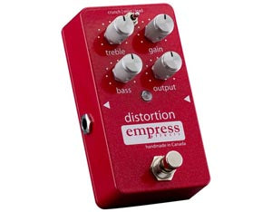 From mild to crunch to lead, the empress distortion does it all. This true bypass pedal offers three flavors of distortion while retaining a super tight low end and naturally compressing like a high gain amp.