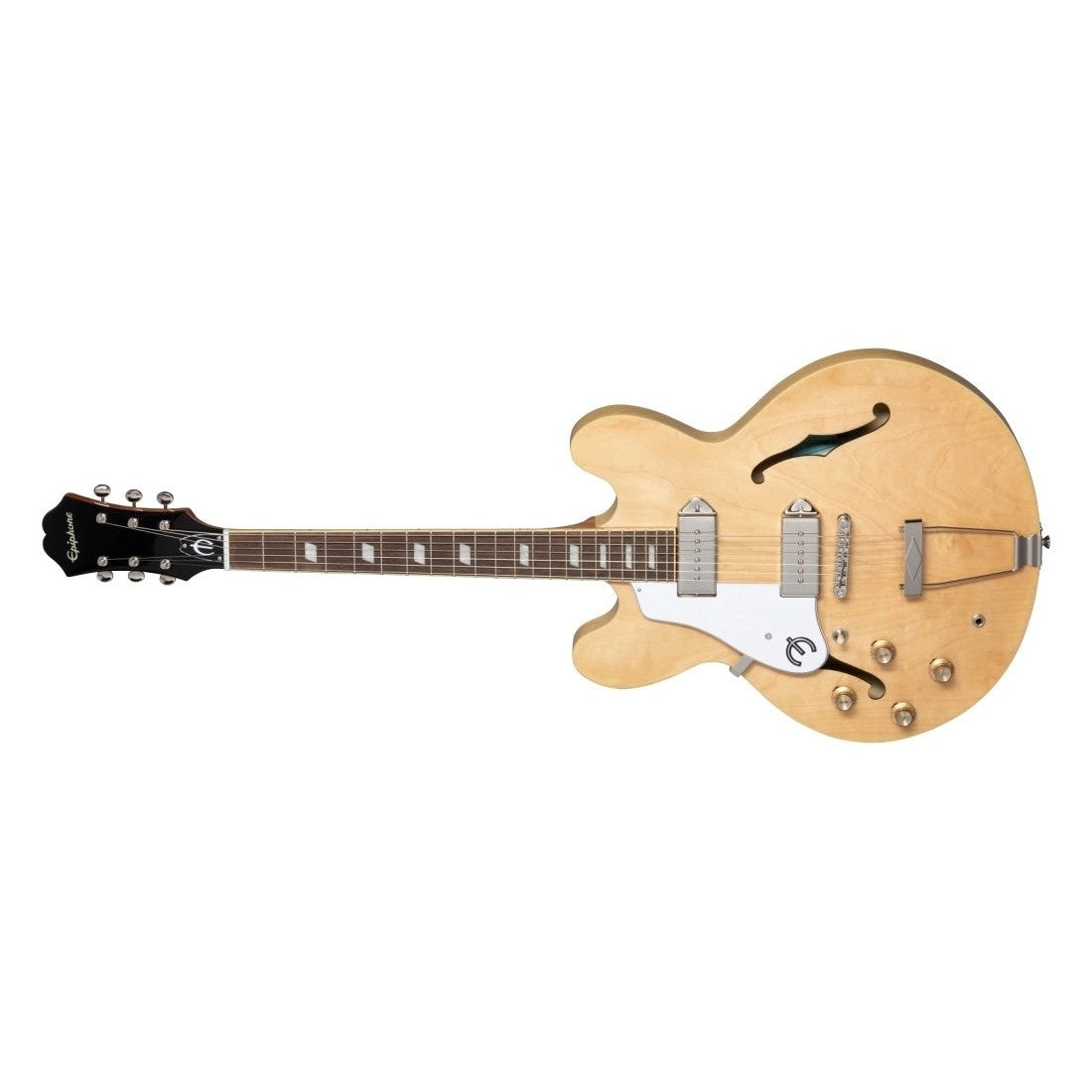 Since 1961, the legendary Casino™ has been Epiphone's best-selling archtop and a rock 'n' roll standard. First introduced in 1961, the Casino was just one of several new thin-line archtops designed and produced at the company's adopted new factory in Kalamazoo, Michigan that it shared with one-time competitor and new partner, Gibson. The Casino was adopted by Keith Richards of The Rolling Stones who used a Casino to record the demo for "Satisfaction" at Chess Records in Chicago. Howlin' Wolf took a Casino on his first tour of the UK, appearing on Thank Your Lucky Stars. Shortly afterward, John Lennon and George Harrison bought Casinos for the Beatles' 1966 world tour. Featuring Dogear PRO P-90 pickups and a 5-ply maple body.