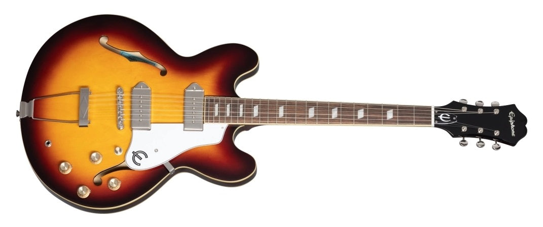 Since 1961, the legendary Casino™ has been Epiphone's best-selling archtop and a rock 'n' roll standard. First introduced in 1961, the Casino was just one of several new thinline archtops designed and produced at the company's adopted new factory in Kalamazoo, Michigan that it shared with one-time competitor and new partner, Gibson. The Casino was adopted by Keith Richards of The Rolling Stones who used a Casino to record the demo for "Satisfaction" at Chess Records in Chicago. Howlin' Wolf took a Casino on his first tour of the UK, appearing on Thank Your Lucky Stars. Shortly afterward, John Lennon and George Harrison bought Casinos for the Beatles' 1966 world tour. Featuring Dogear PRO P-90 pickups and a 5-ply maple body.